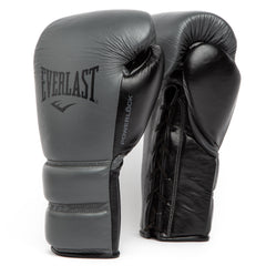 The Everlast Powerlock 2 Pro Fight Boxing Gloves are constructed with full-grain leather for maximum durability and performance. Its multi-layered foam core provides competition-ready protection for hard strikes, while the ergonomic grip bar enables proper fist position to prevent injuries. Tie to your desired fit using the traditional lace system. The raised cuff lace track prevents lace movement during workouts or sparring. Its sweat-resistant polyester/nylon foam interior lining cleans easily for the next use.